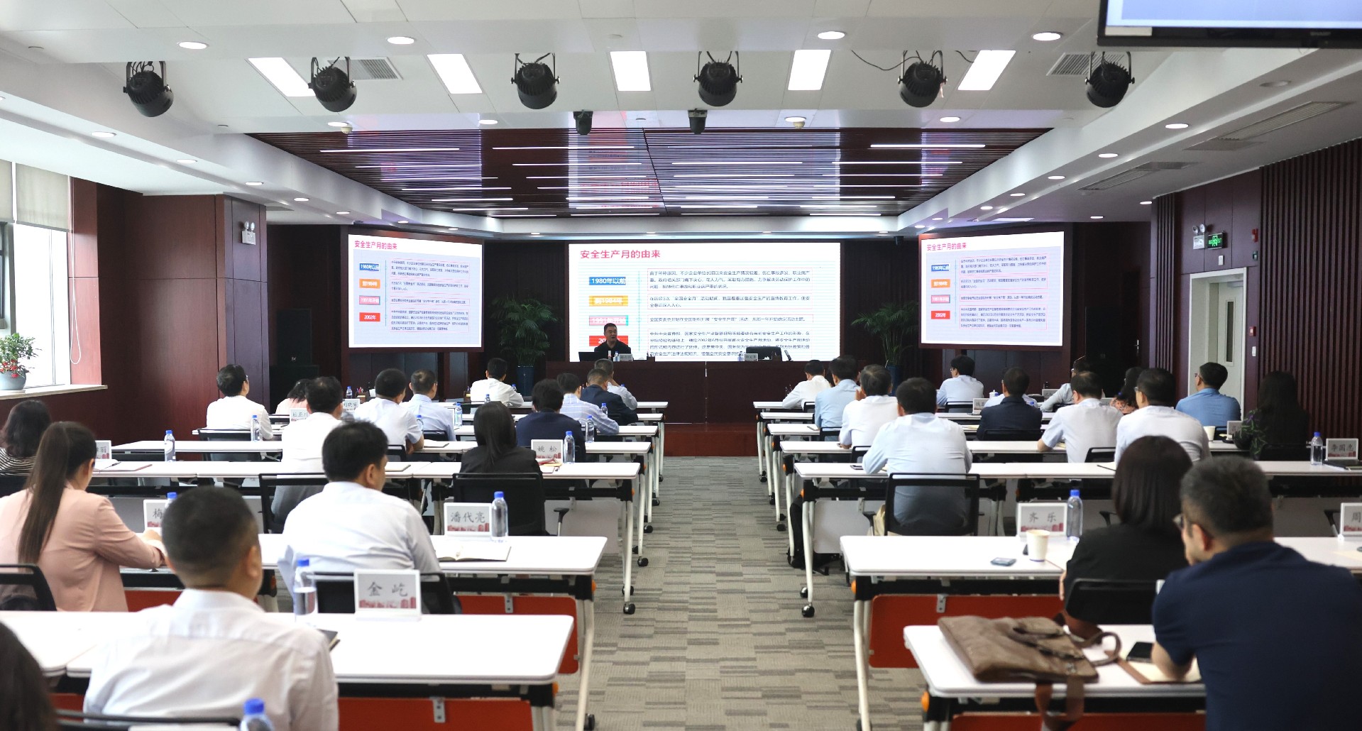 集團(tuán)領(lǐng)導(dǎo)黃林沐、吳天、魏李翔、沈和付參加會(huì)議,各成員公司主要負(fù)責(zé)同志、分管負(fù)責(zé)同志、經(jīng)辦部門負(fù)責(zé)人及安全生產(chǎn)管理人員,集團(tuán)全體干部員工近100人參加培訓(xùn)。